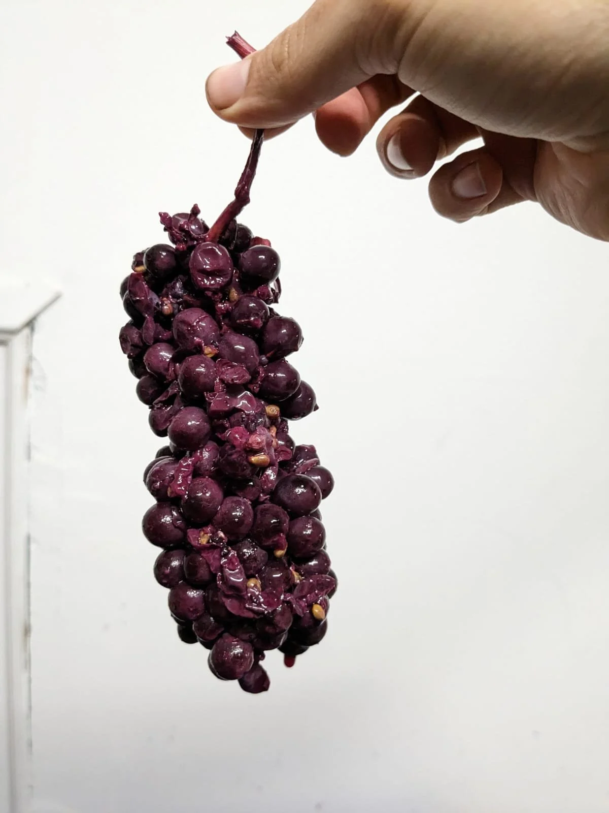 There are also practical benefits. The structural lattice created by the stems makes the cap easier to manage and often allows pressing to be gentler, because the berries haven’t all been pulverised into a dense mass.