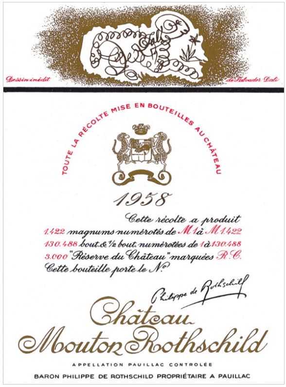 The roll call is pretty cool: Picasso, Warhol, Hockney, and in 1958, Salvador Dalí. His contribution was characteristically wacky. Reportedly accepting payment partly in kind, cases of Mouton itself, and produced a label with his unmistakable surreal flourish. It seemed that Dalí, used wine as a symbol of transformation and excess, themes that sat comfortably within his wider body of work.