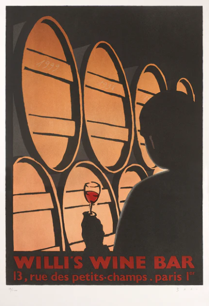 I was at Willi's Wine Bar just as Sasha first mentioned a collaboration. Passing through Paris, I saw their commissioned posters; each year artists create a piece celebrating the joy of wine, then they sell limited prints.